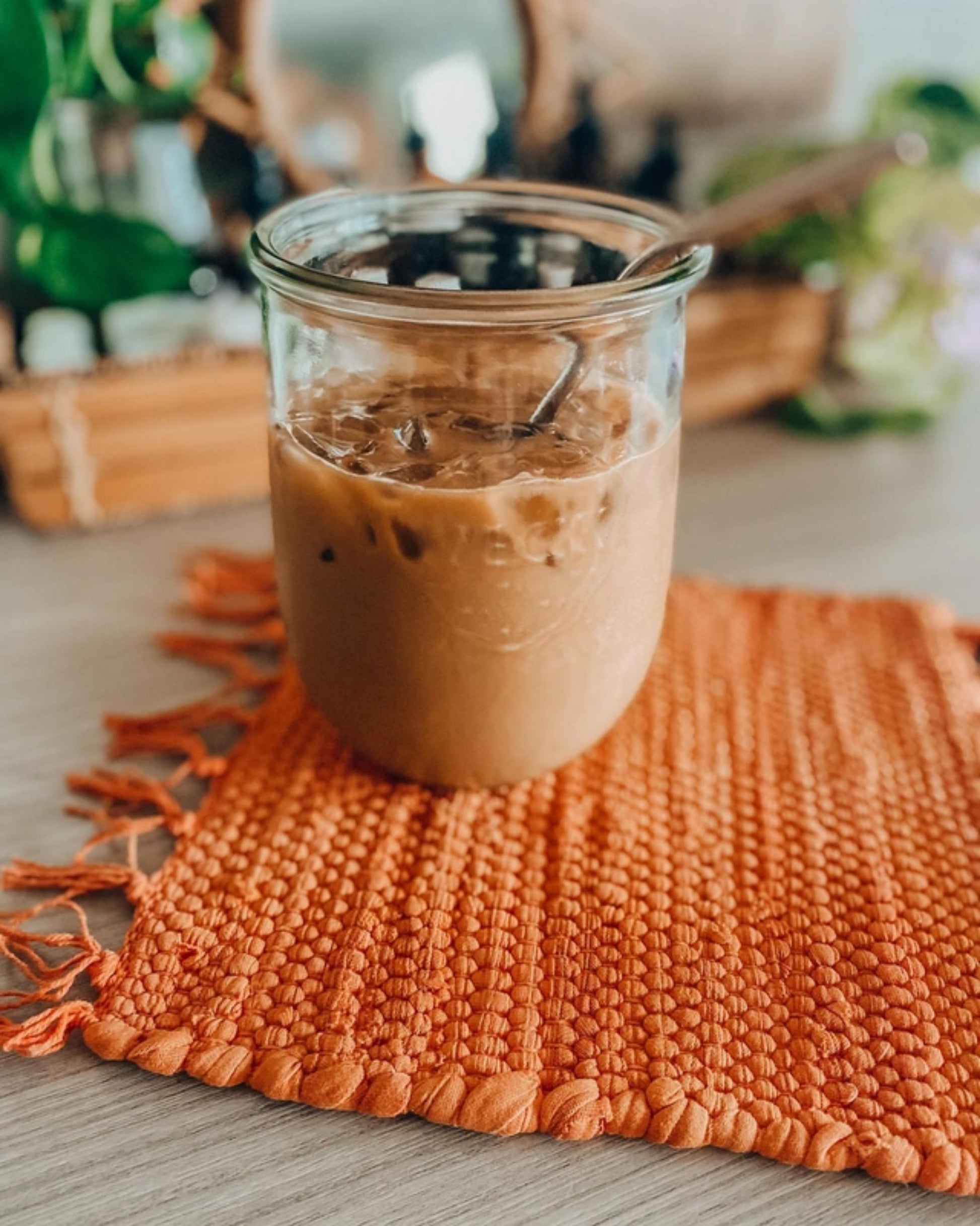 Handcrafted chindi rag rug hot pad. Made using repurposed rug materials in India.