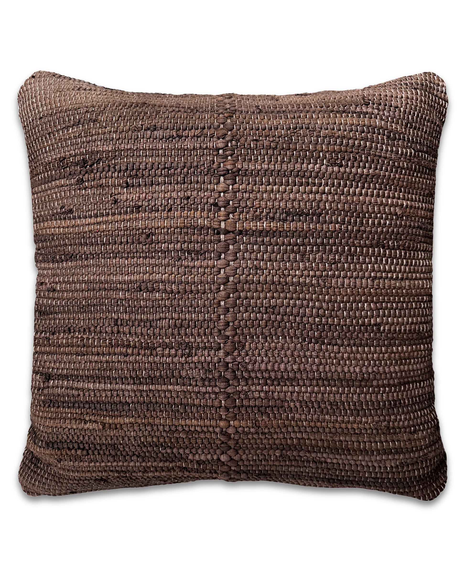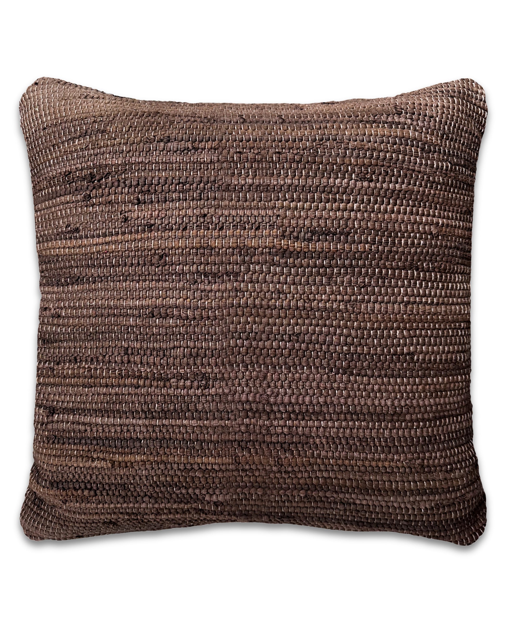Handcrafted chindi rag rug pillow. Rag rug making is an age-old tradition, breathing new life into leftover fabric scraps. From waste to wonderful, we've chosen to display the braided edge front and center. We love the texture and handmade quality of these pillows in rich tones.