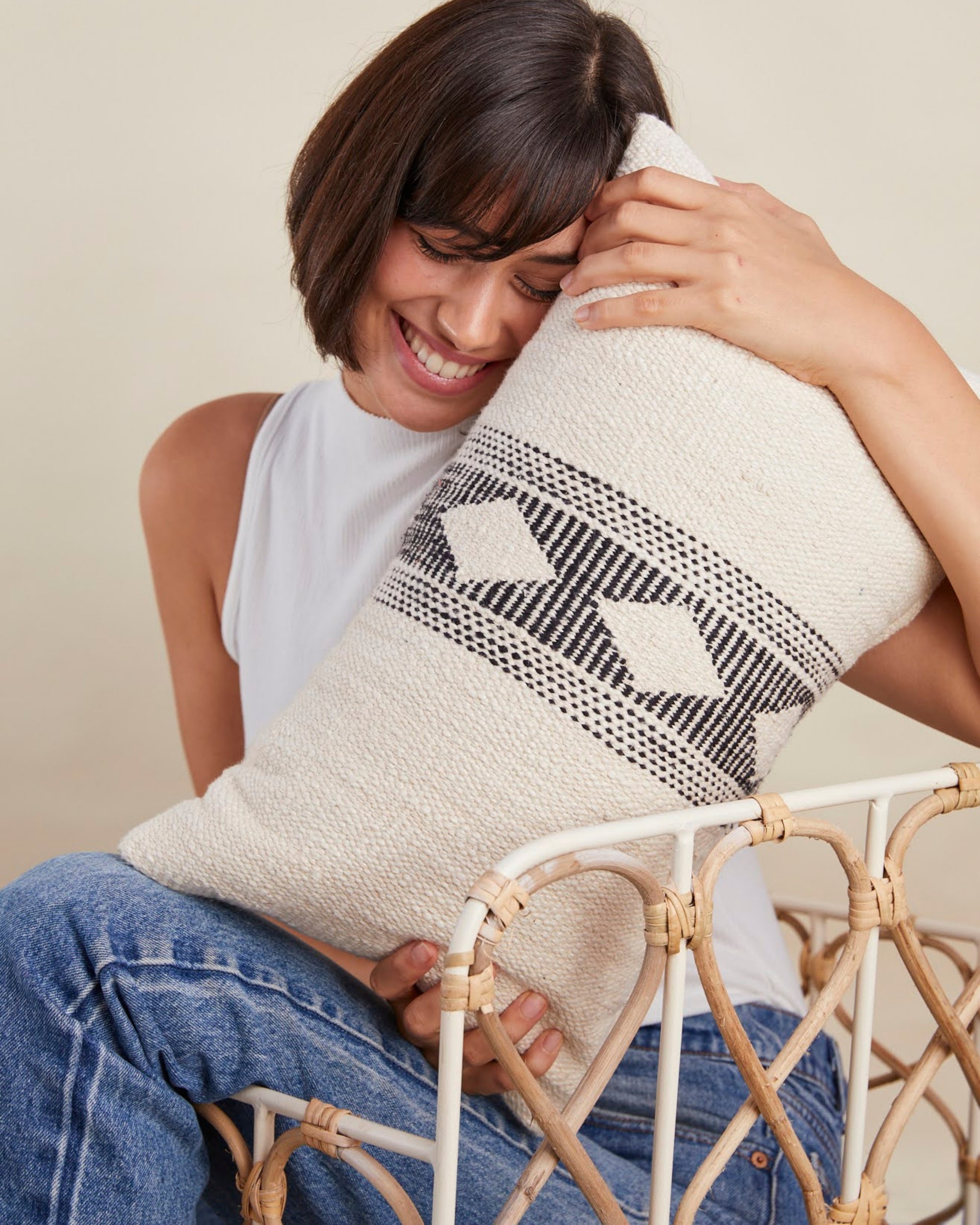 Our gemma pillow in super soft slub cotton brings texture and pattern in a subtle way. A diamond stripe pattern emerges from soft contrasting stripes. This mix master is a modern neutral.